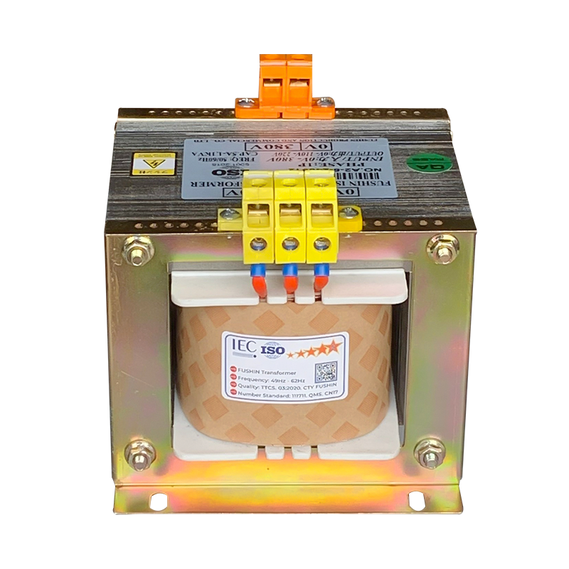 Biến áp 1,1KVA dạng biến trần không có vỏ thùng ứng dụng để lắp ráp trong các tủ điện điều khiển công nghiệp, dân dụng, y tế , viễn thông.... Sản phẩm của cty Fushin sản xuất có tiêu chuẩn sản xuất theo công nghệ Nhật Bản, Với các loại Fe tôn Silic Nhập khẩu 100% của Nhật Bản có độ từ tính Fe 470. Dây đồng 100% đạt hiệu suất cao.