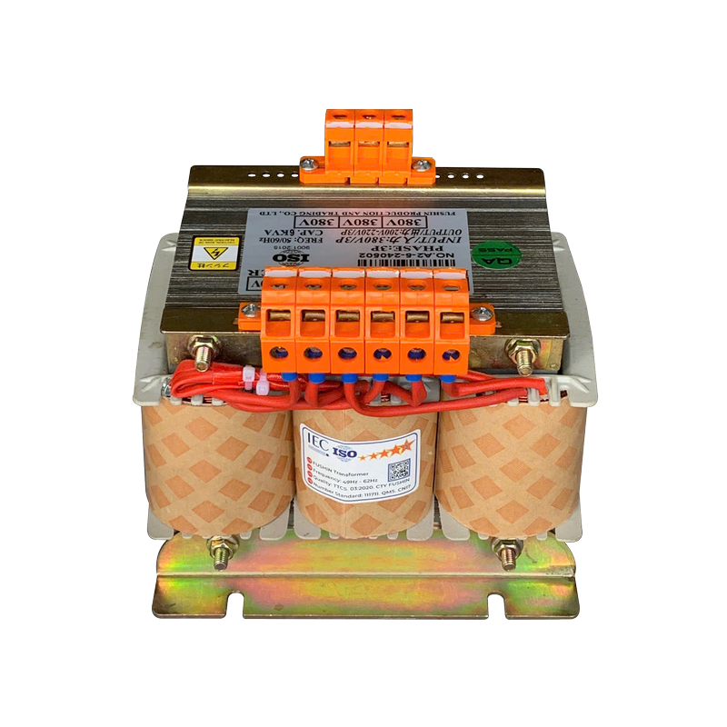 Biến áp 3 pha 380V/220V - 6KVA dạng biến trần tự ngẫu, không có vỏ thùng ứng dụng để lắp ráp trong các tủ điện điều khiển công nghiệp, dân dụng, y tế , viễn thông.... Sản phẩm của cty Fushin sản xuất có tiêu chuẩn sản xuất theo công nghệ Nhật Bản, Với các loại Fe tôn Silic Nhập khẩu 100% của Nhật Bản có độ từ tính Fe 470.