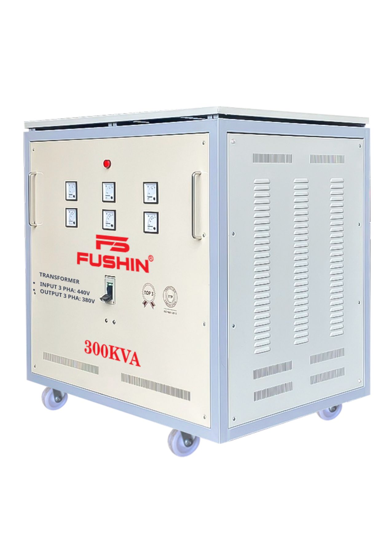 Máy biến áp 3 pha 440V/380V 300KVA Fushin Transformer Model S.II là dòng sản phẩm thế hệ mới, được sản xuất theo công nghệ hiện đại đạt tiêu chuẩn TCCS – TCVN – ISO 9001, đáp ứng nhu cầu sử dụng điện 3 pha trong công nghiệp và sản xuất với độ bền và hiệu suất vượt trội.