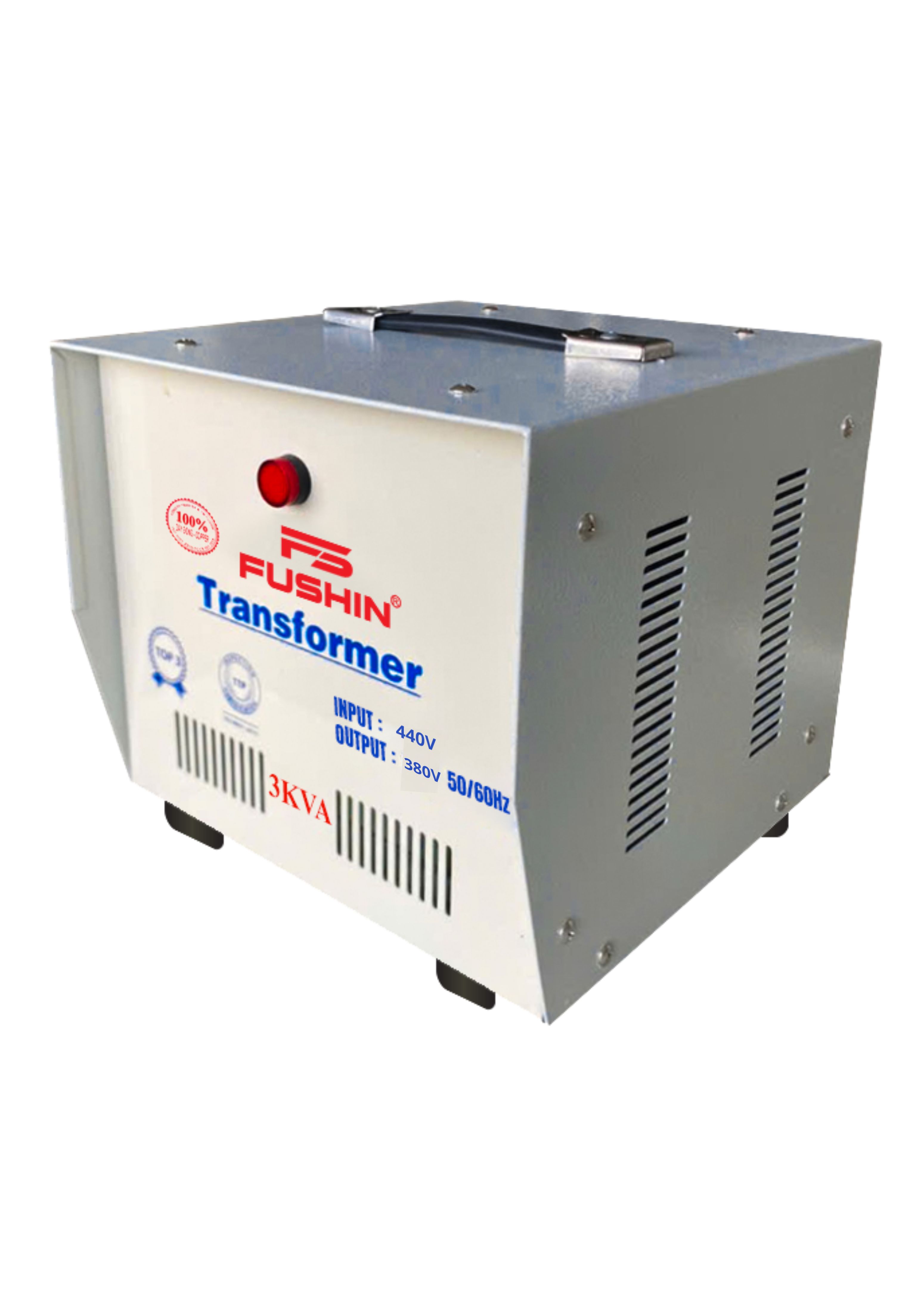 Máy biến áp 3 pha 440V/380V 3KVA Fushin Transformer Model S.II là dòng sản phẩm thế hệ mới, sử dụng 100% dây đồng, được sản xuất theo công nghệ hiện đại đạt tiêu chuẩn TCCS – TCVN – ISO 9001, đáp ứng nhu cầu sử dụng điện 3 pha trong công nghiệp và sản xuất với độ bền và hiệu suất vượt trội.