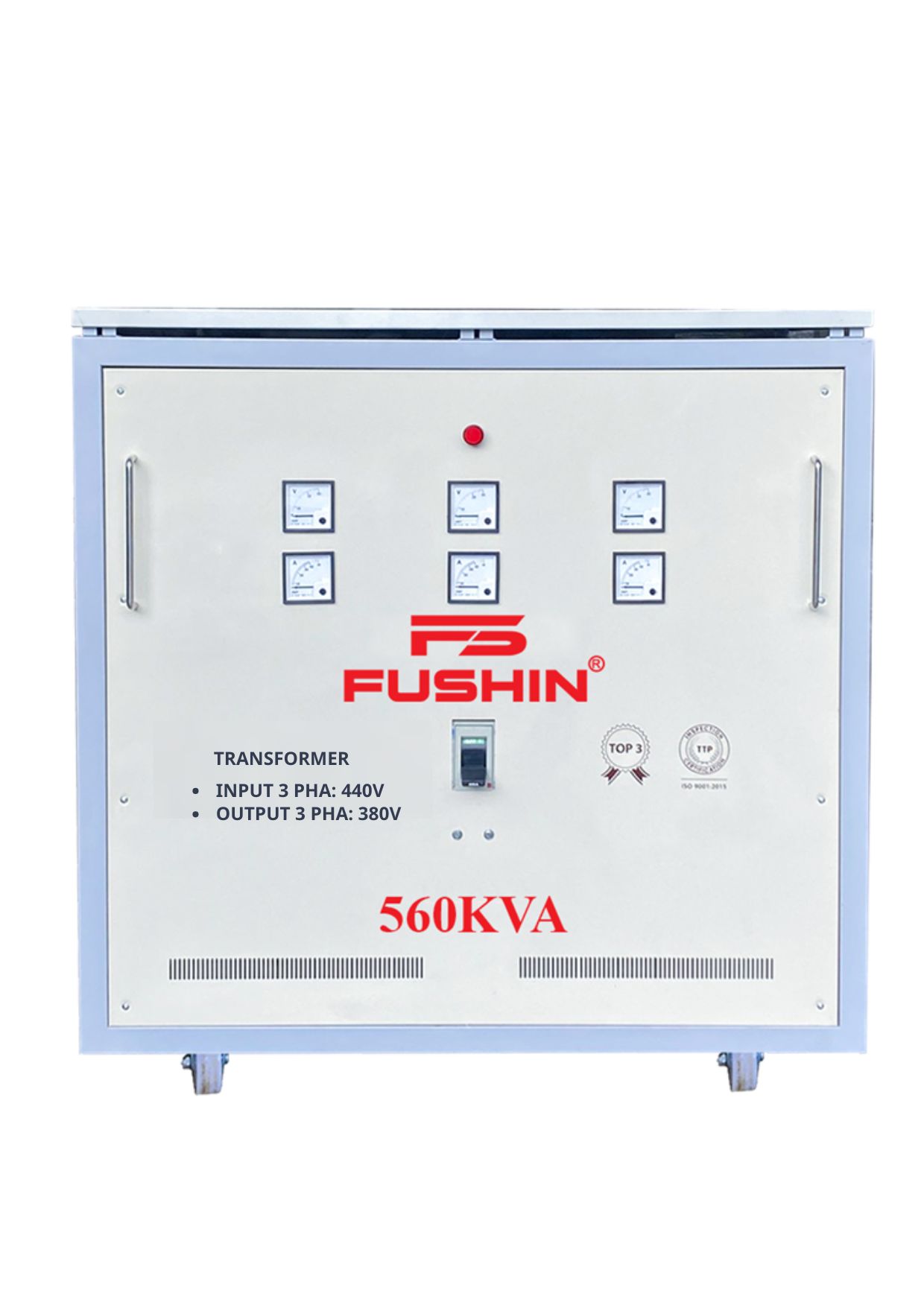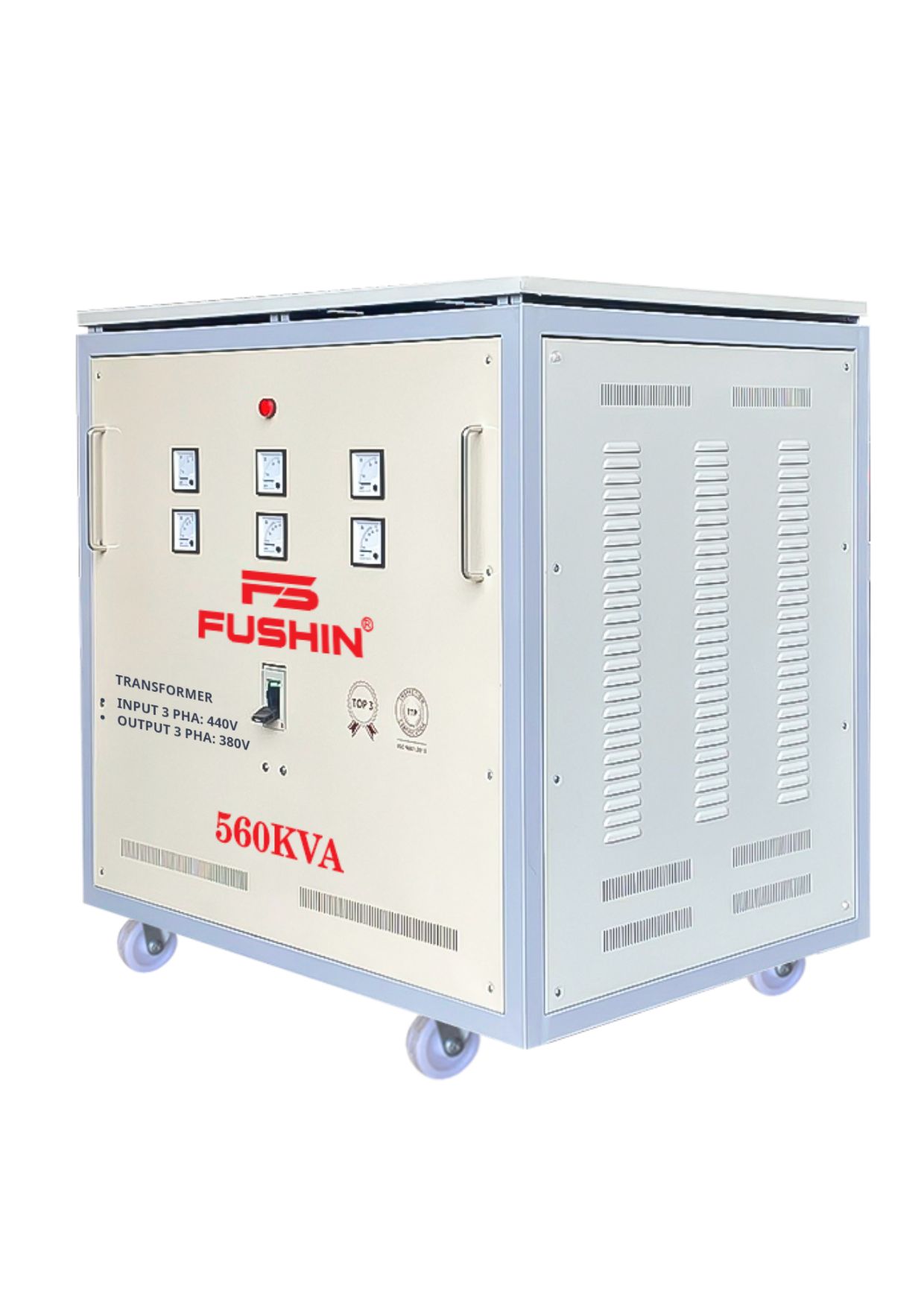 Máy biến áp 3 pha 440V/380V 560KVA Fushin Transformer Model S.II là dòng sản phẩm thế hệ mới, được sản xuất theo công nghệ hiện đại đạt tiêu chuẩn TCCS – TCVN – ISO 9001, đáp ứng nhu cầu sử dụng điện 3 pha trong công nghiệp và sản xuất với độ bền và hiệu suất vượt trội.