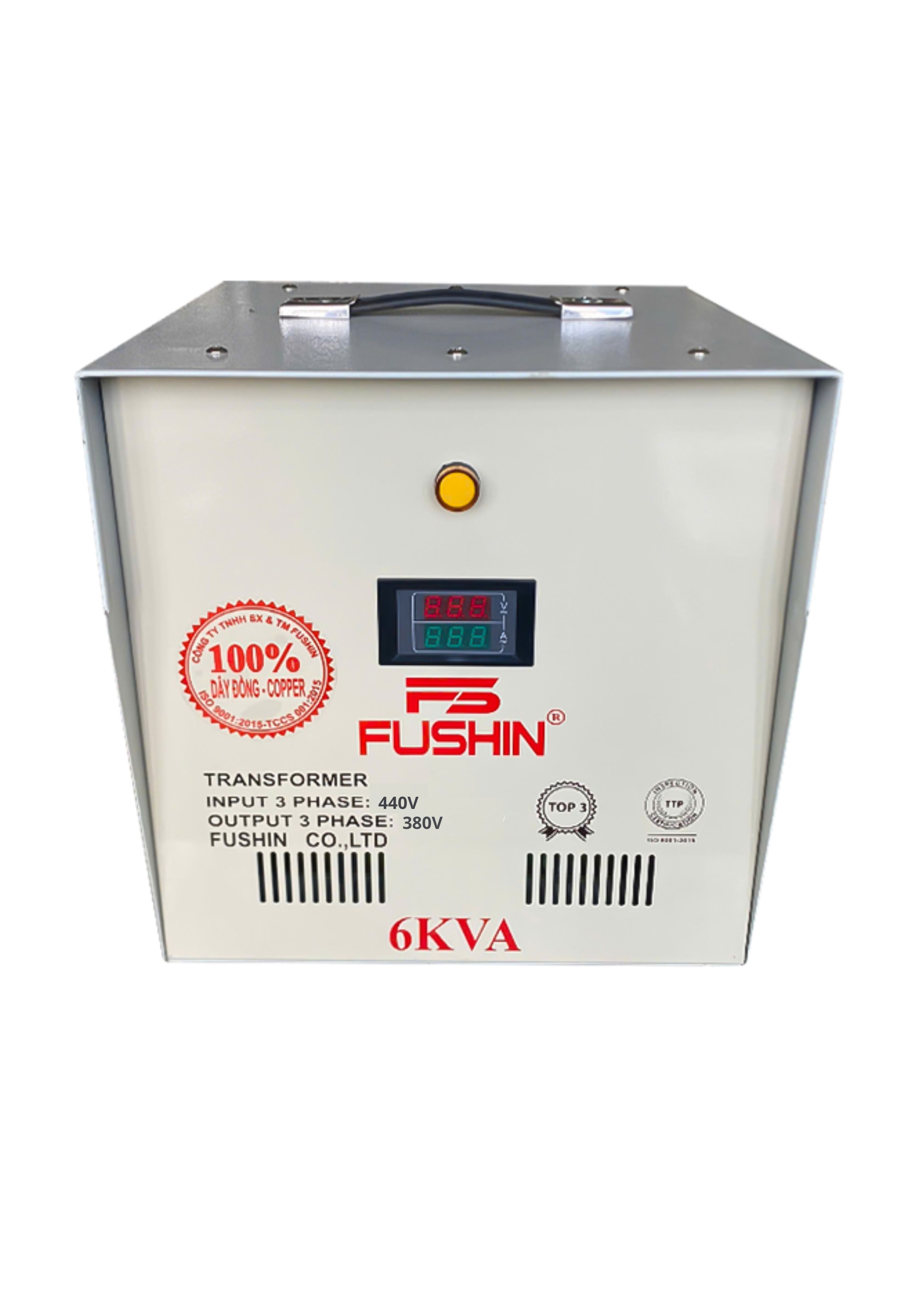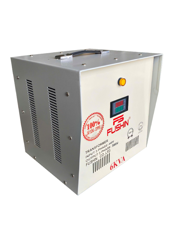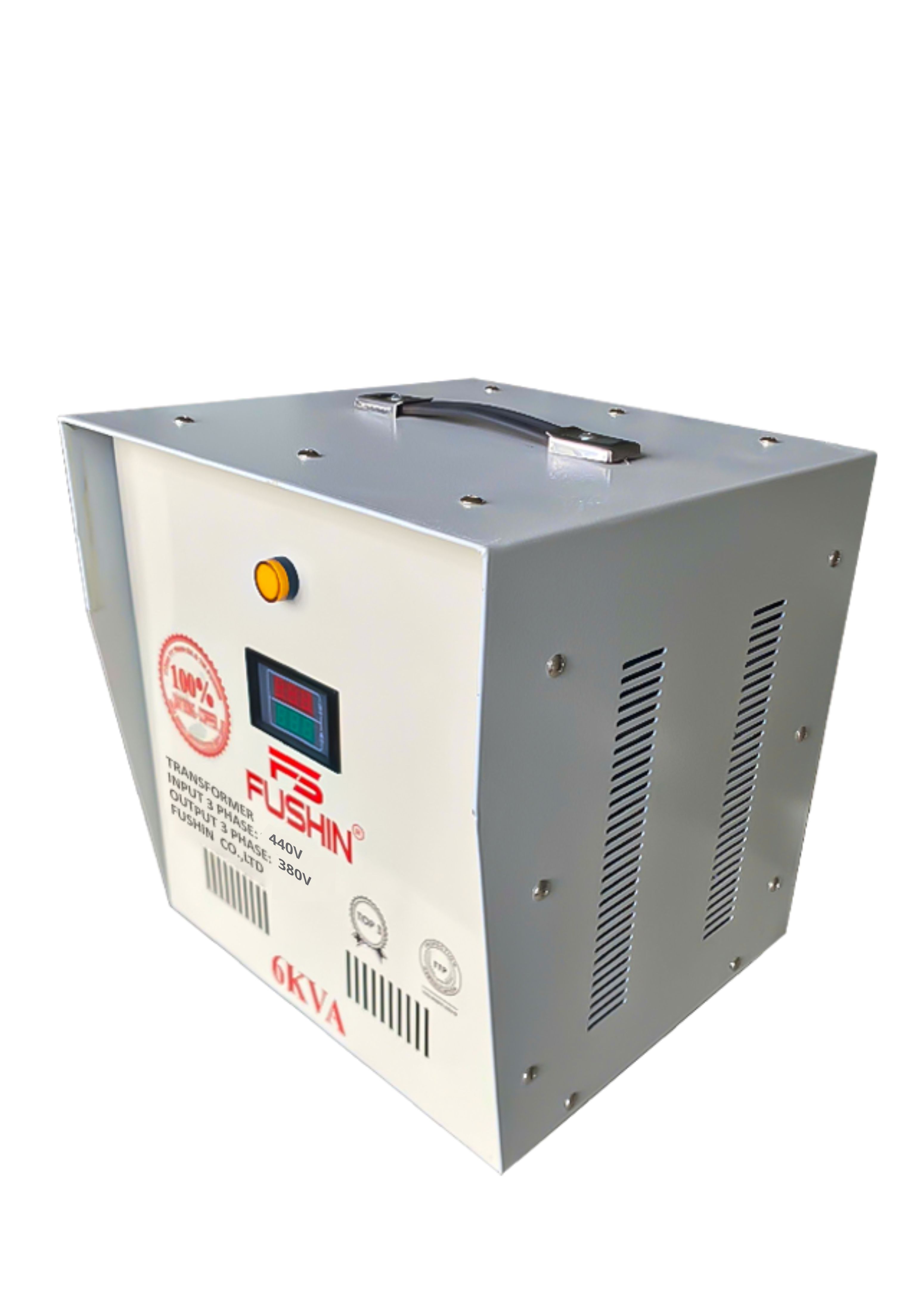 Máy biến áp 3 pha 440V/380V 6KVA Fushin Transformer Model S.II là dòng sản phẩm thế hệ mới, sử dụng 100% dây đồng, được sản xuất theo công nghệ hiện đại đạt tiêu chuẩn TCCS – TCVN – ISO 9001, đáp ứng nhu cầu sử dụng điện 3 pha trong công nghiệp và sản xuất với độ bền và hiệu suất vượt trội.
