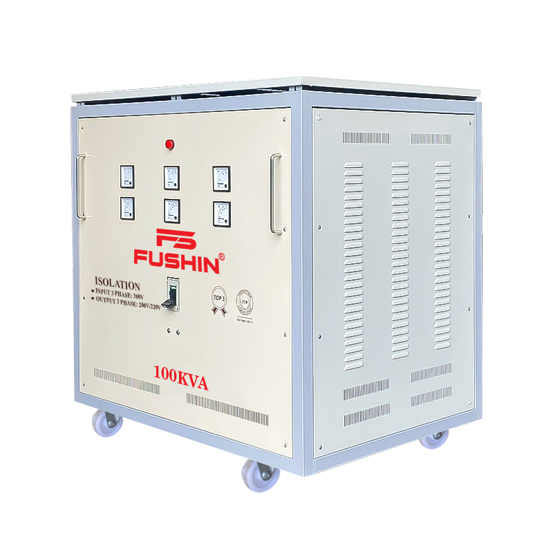 - Đổi nguồn 3 pha 380V ra 3 pha 200V và 3 pha 220V sử dụng cho các máy nội địa sử dụng điện 3 pha 200V-220V của các nước như Mỹ, Nhật, Đài Loan. Máy biến áp cách ly được công ty Fushin sản xuất hiện đại và công nghiệp. Biến áp khi sử dụng mang hiệu suất cao, Không hao tổn điện năng khi sử dụng không tải. Máy biến áp cách ly 100KVA vừa có chức năng đổi nguồn vừa có các chức năng chống giật, chống nhiễu, chống sung tốt, An toàn khi sử dụng trong sản xuất.