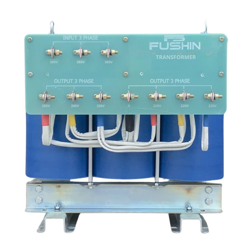 Biến áp 3 pha 380V/220V - 50KVA dạng biến trần cách ly, không có vỏ thùng ứng dụng để lắp ráp trong các tủ điện điều khiển công nghiệp, dân dụng, y tế , viễn thông.... Sản phẩm của cty Fushin sản xuất có tiêu chuẩn sản xuất theo công nghệ Nhật Bản, Với các loại Fe tôn Silic Nhập khẩu 100% của Nhật Bản có độ từ tính Fe 470. Dây đồng 100% đạt hiệu suất cao.