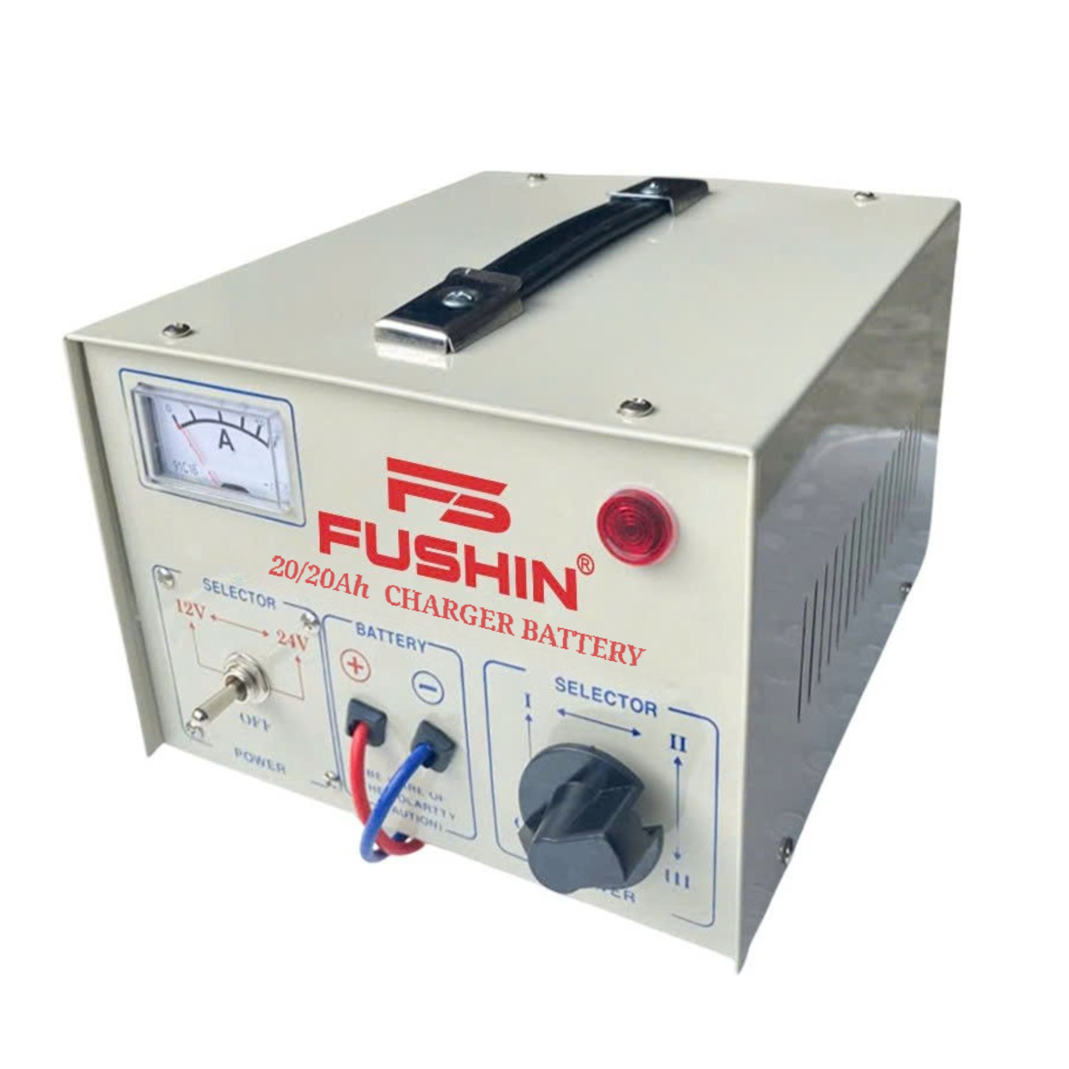 - Máy sạc bình ắc quy tăng giảm 20A Fushin được chế tạo để nạp điện cho các loại bình ắc quy khí, nước, khô. Đặc biệt là bình ắc quy của xe máy, xe nâng, xe ô tô,....