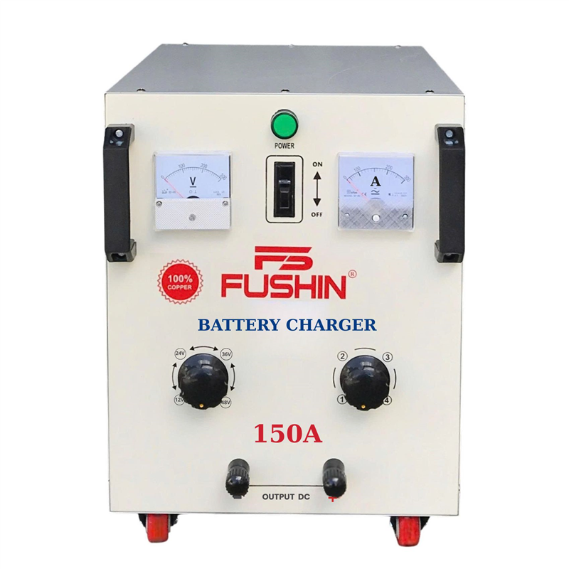 - Máy sạc bình ắc quy tăng giảm 150A Fushin được chế tạo để nạp điện cho các loại bình ắc quy khí, nước, khô. Đặc biệt là bình ắc quy của xe máy, xe nâng, xe ô tô,....