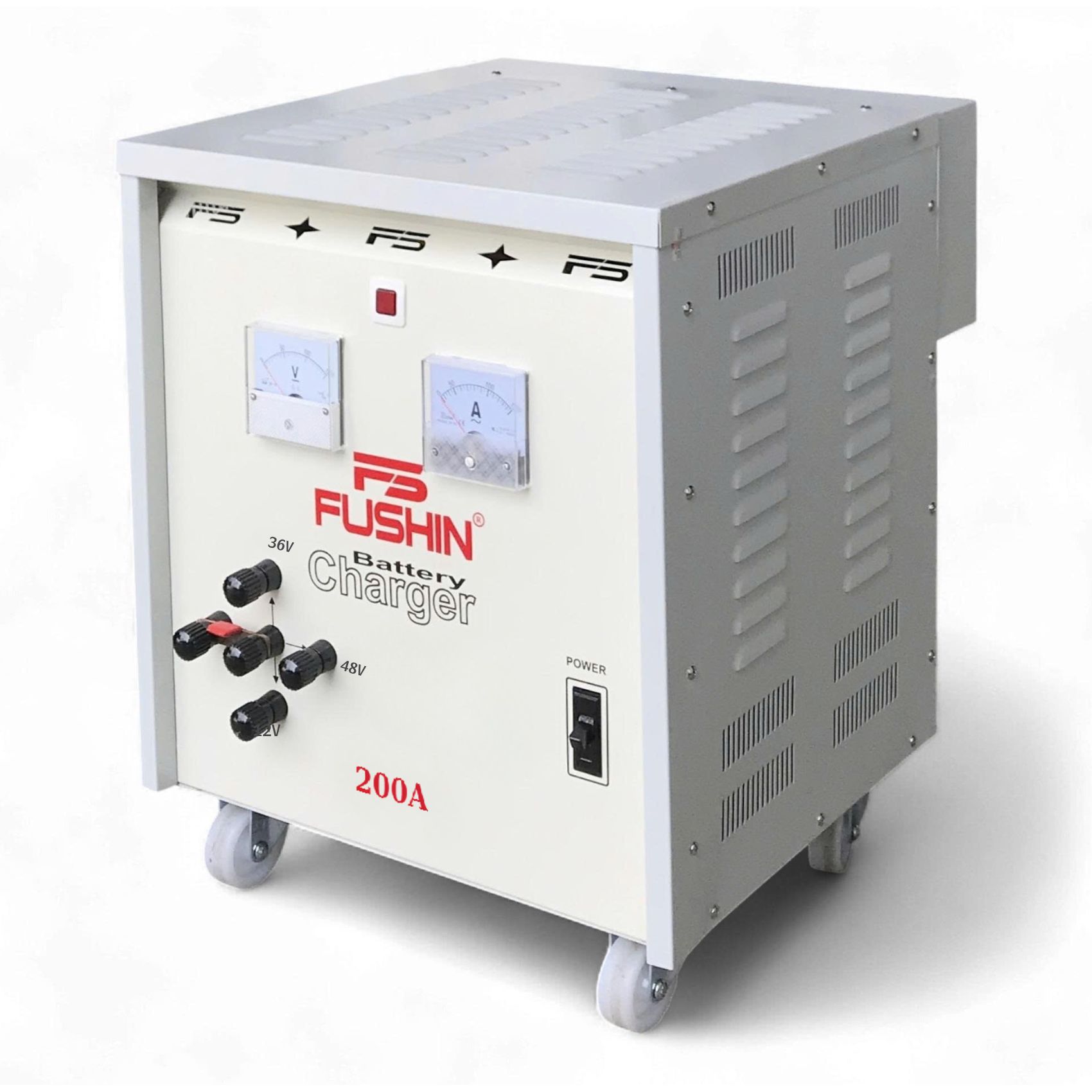 - Máy sạc bình ắc quy tăng giảm 150A Fushin được chế tạo để nạp điện cho các loại bình ắc quy khí, nước, khô. Đặc biệt là bình ắc quy của xe máy, xe nâng, xe ô tô,....