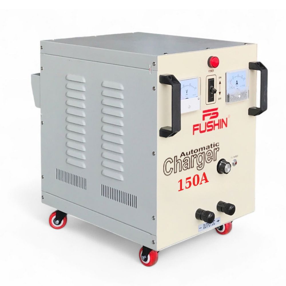 - Máy sạc bình ắc quy 150A Fushin được chế tạo để nạp điện cho các loại bình ắc quy khí, nước, khô. Đặc biệt là bình ắc quy của xe máy, xe nâng, xe ô tô,....